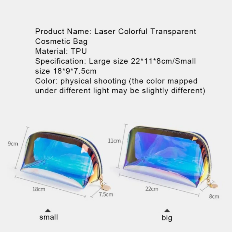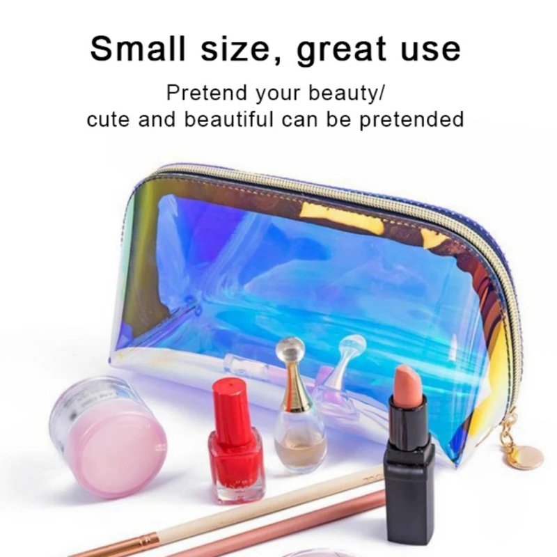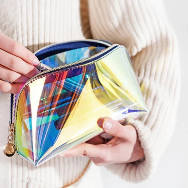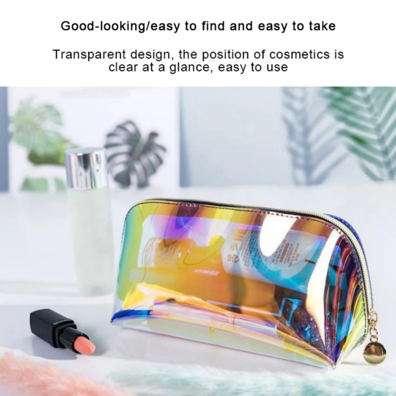 -Rainbow color and semi - transparent design: This shiny makeup package can see the color of different directions. The unique personality makes you attract you anywhere. Translucent perspective features, you can quickly view and select the items you need, do not need to waste time to dig other cosmetic bags; convenient time.